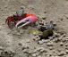 Небольшой яркий краб с очень любопытным поведением. В одном акватеррариуме или аквариуме можно содержать несколько штук. Крабу требуется выход на сушу. Акватеррариум или аквариум разделяют на две зоны - зона суши и зона воды. Переход из одной зоны в другую надо сделать плавным. Воду для содержания подсаливают, лучше морской солью. Соли надо 1-2 столовые ложки на 10 литров. В зону воды необходимо установить небольшой фильтр, для поддержания чистоты воды. Крабы ощипывают водорослевые. В качестве корма можно использовать замороженный циклоп.