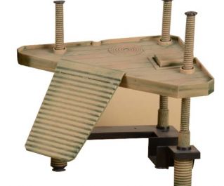 Удобный и красивый треугольный плотик с донной фиксацией стилизован под участок деревянной палубы или пирса и предназначен для размещения в акватеррариумах с животными (чаще всего черепахами) размером до 15 см; питомцам большего размера данный плотик будет маловат. Сделан из высококачественного пластика, легко моется, есть удобный трап для выползания из воды. Небольшие присоски сделаны из резины, аккуратно встроены в направляющие элементы снизу (чтобы животные не смогли до них добраться и повредить) и держат всю конструкцию очень крепко. Плотик плавает на поверхности, свободно перемещаясь вверх и вниз вслед за уровнем воды, и имеет высокую грузоподъёмность. Направляющие – составные, их высоту можно регулировать, в зависимости от глубины акватеррариума. В целом, это одна из наиболее удачных моделей плотиков, выпускаемых промышленностью.