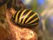 Улитка зебра названа так из-за полосатой окраски панциря в желто-коричневую полоску. Улитка зебра среднего размера, неприхотлива в содержании и весьма полезна в борьбе с обрастаниями. Улитка тяжеловата для чистки растений, но стекла и декорации будет содержать в идеальном состоянии. Когда закончатся водоросли улитка с охотой перейдет на питание остатками сухого корма, особенно таблеток для сомов с содержанием спирулины. Но водорослевые обрастания составляют ее основной рацион, и в поисках их, улитка будет постоянно в движении. Улитки совершенно мирные, даже самые маленькие рыбки или креветки будут в полной безопасности.